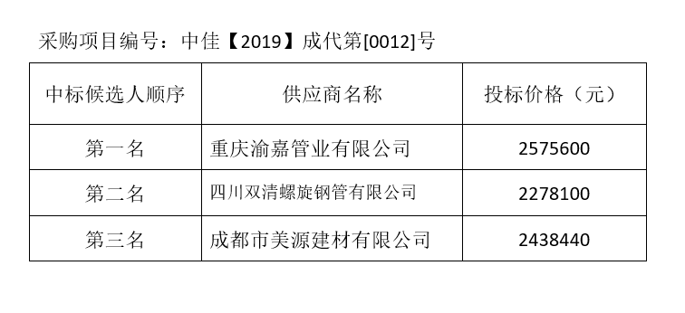 內江市水務有限責任公司螺旋鋼管管材及管件采購項目評標結果公示