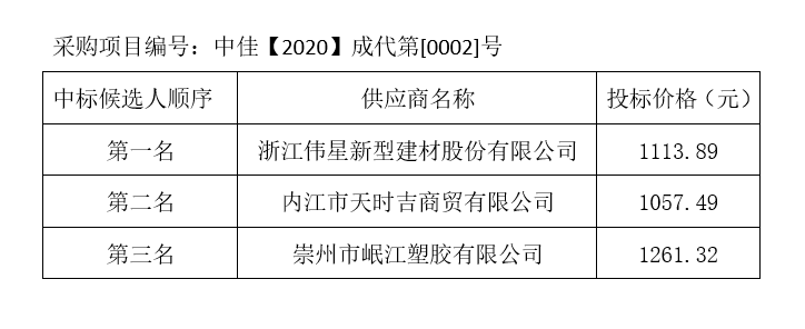 內江市水務有限責任公司PPR給水管及管件采購項目評標結果公示