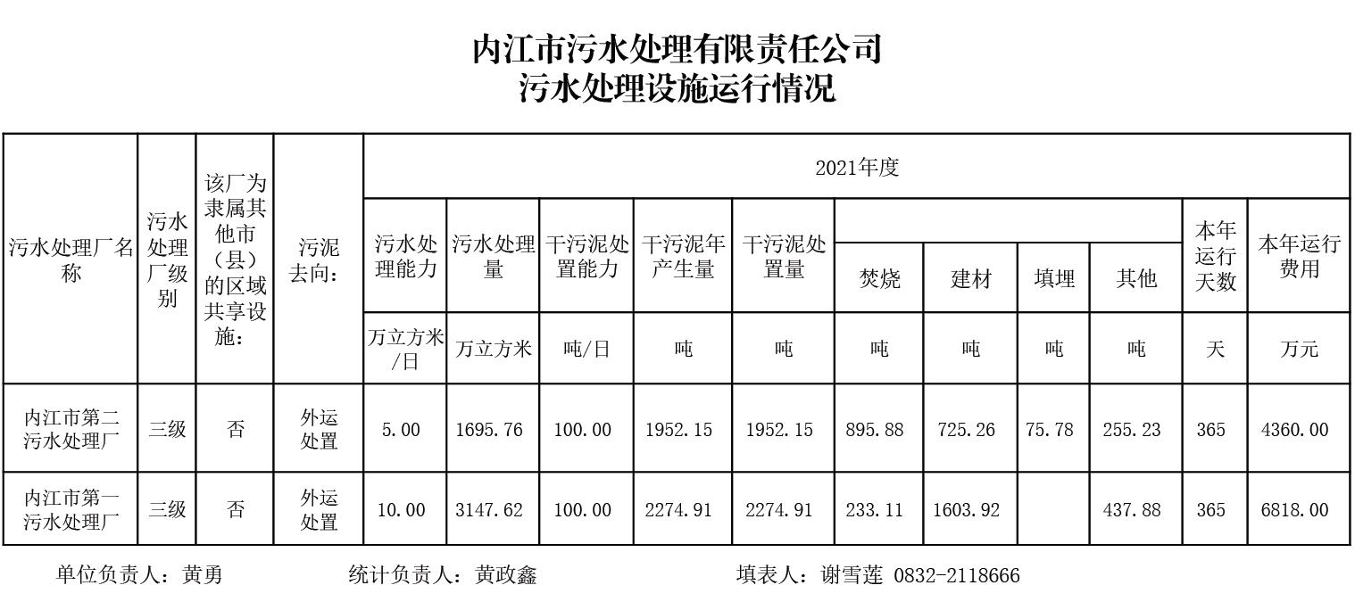 內江市污水處理有限責任公司污水處理設施運行情況