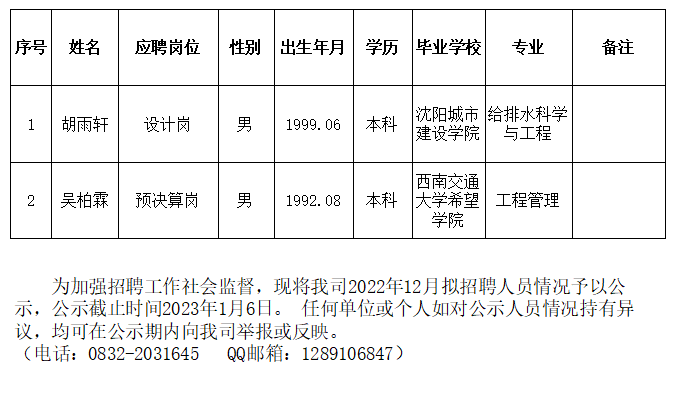 內江市水務有限責任公司2022年12月擬招聘人員公示