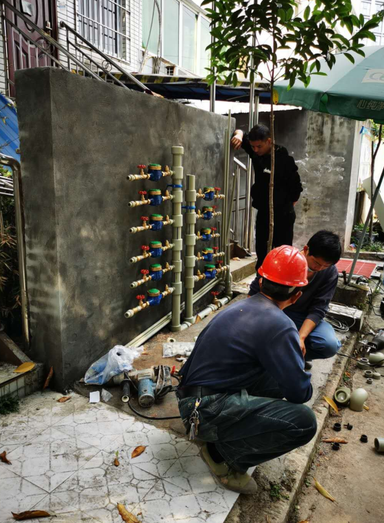 在做好安全防護準備后,歷經4天的清淤轉移,2天的鉆孔開窗、管溝開挖、新表墻砌筑,2天的集中攻關改管后,將原有表位廢除遷改,在4月30日完成整改工作,確保了“五一”期間經營戶的正常營業用水。
