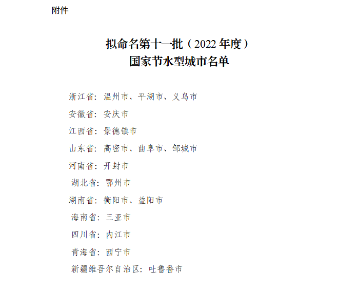 關于擬命名第十一批(2022年度) 國家節(jié)水型城市的公示
