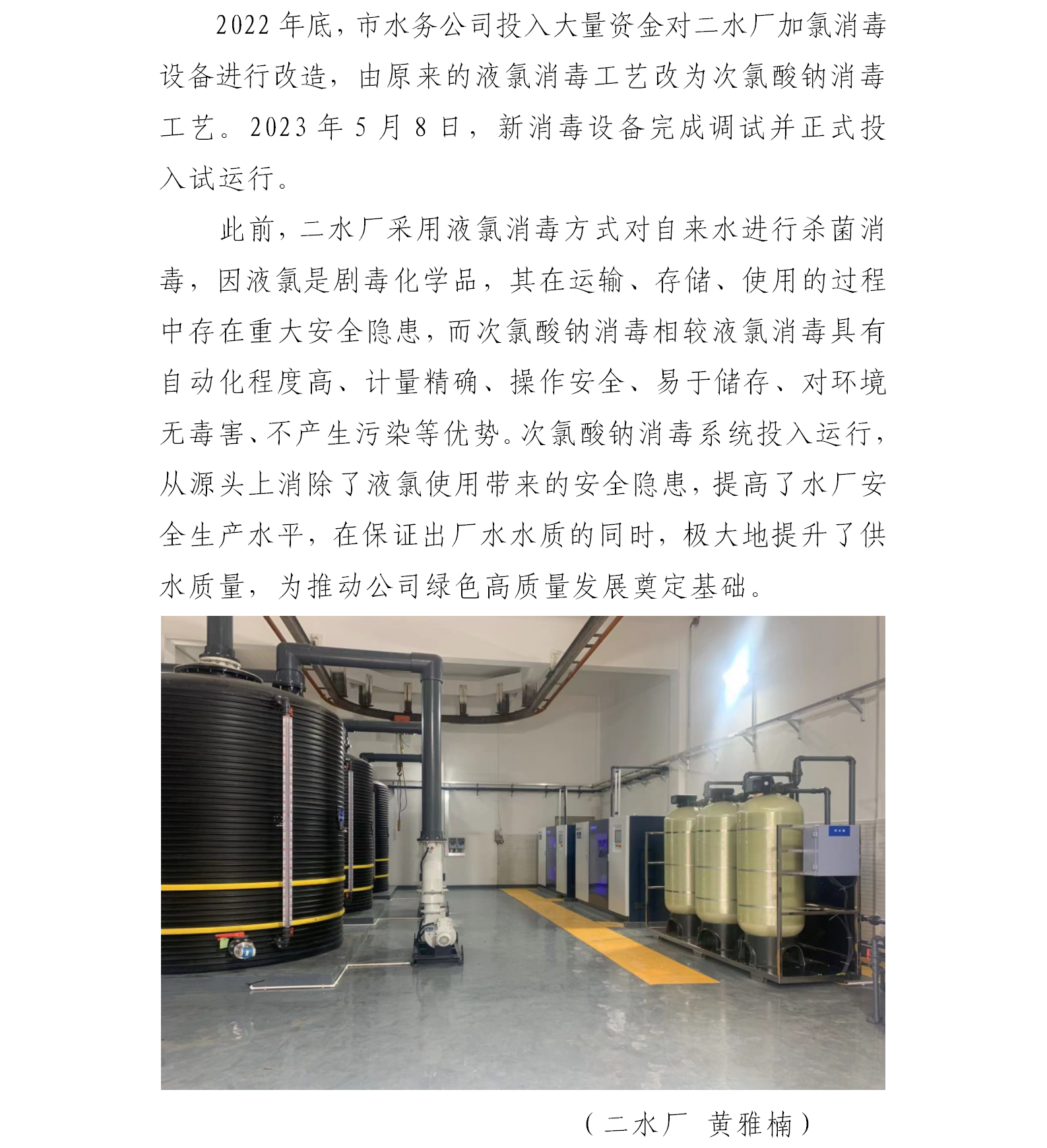 二水廠完成次氯酸鈉消毒系統改造工程