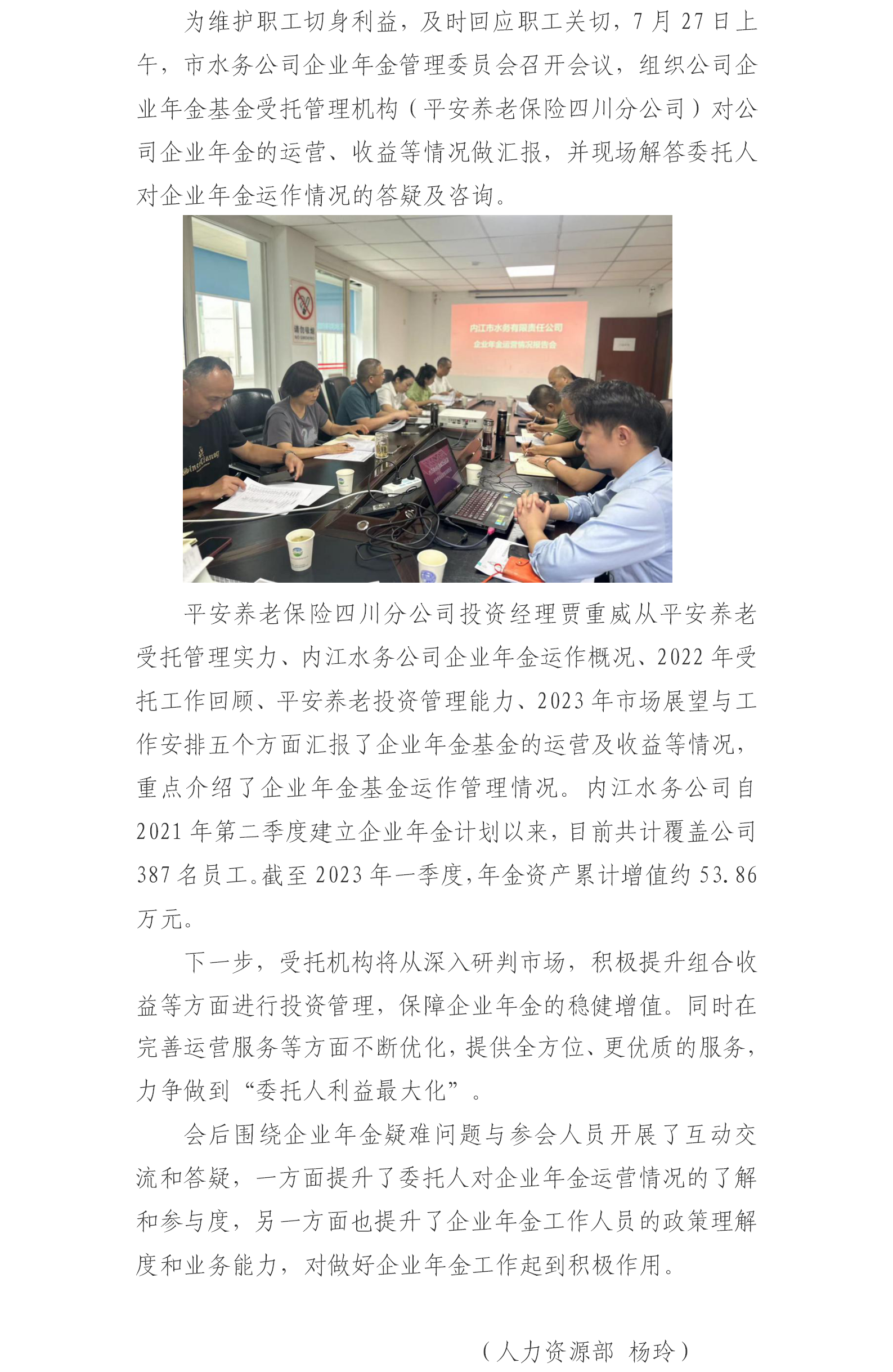 市水務(wù)公司召開企業(yè)年金運營情況報告會