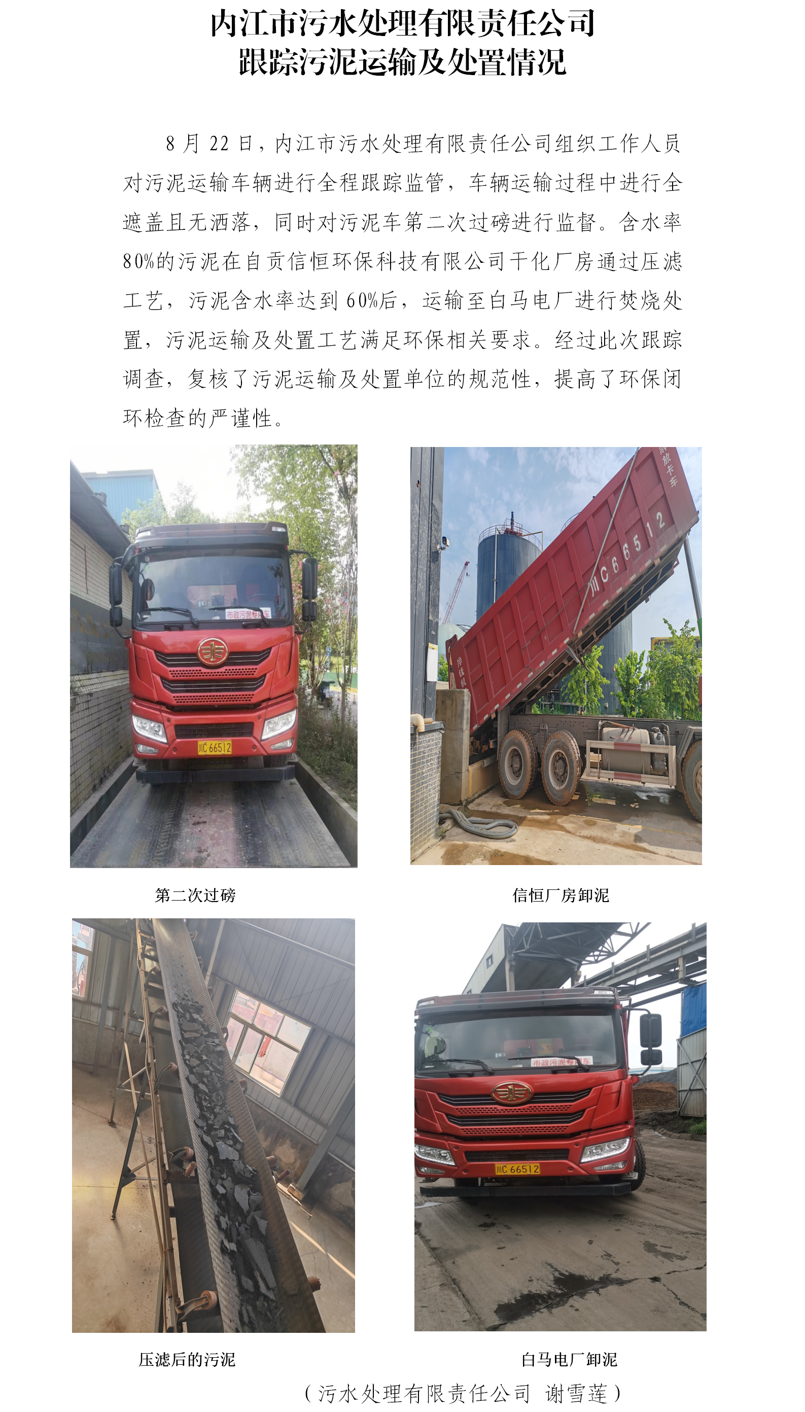 內江市污水處理有限責任公司跟蹤污泥運輸及處置情況