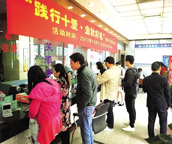 乘“踐行十愛(ài)·德耀甜城”春風(fēng),秉承“做好供水服務(wù)、提高服務(wù)品質(zhì)”之傳統(tǒng),今年來(lái),內(nèi)江市水務(wù)有限責(zé)任公司(以下簡(jiǎn)稱“水司”)推出了一系列“惠民、便民”服務(wù),希冀將溫暖傳遞到家家戶戶…… 金秋十月,惠民萬(wàn)家 “請(qǐng)幫我預(yù)存800元……”“我要領(lǐng)口炒鍋……”10月11日上午9時(shí)許,“水司”玉溪路收費(fèi)廳里人潮涌動(dòng)、熱鬧非凡。 窗口前,預(yù)存水費(fèi)的用戶群整齊劃一地排著長(zhǎng)隊(duì);登記處,工作人員井然有序地發(fā)放禮品、征集“作風(fēng)效能建設(shè)征求意見(jiàn)表”;庫(kù)房?jī)?nèi),餐洗液、食用油、炒鍋等禮品完好裝箱存放,正“翹首以盼”地等待用戶前來(lái)認(rèn)領(lǐng)。 “惠”聚金秋,樂(lè)享好禮。據(jù)玉溪路收費(fèi)廳組長(zhǎng)周麗萍介紹,為感謝廣大用戶對(duì)城市供排水事業(yè)的長(zhǎng)期支持及幫助,“水司”特精心策劃、推出了為期21天的“金秋好禮”預(yù)存水費(fèi)活動(dòng)。即日起至10月31日,凡屬“水司”供水區(qū)域內(nèi)的生活用水戶(一表一戶),結(jié)清欠費(fèi)后預(yù)存相應(yīng)數(shù)額的水費(fèi),憑預(yù)存收據(jù),便可現(xiàn)場(chǎng)領(lǐng)取相應(yīng)的禮品回饋。 禮品為:預(yù)存200元,贈(zèng)送雕牌餐洗一桶或其他;預(yù)存400元,贈(zèng)送斑布生態(tài)竹紙一提或其他;預(yù)存600元,贈(zèng)送金龍魚(yú)葵花籽油(4L)一桶或其他;預(yù)存800元以上,贈(zèng)送蘇泊爾燉鍋一口或蘇泊爾炒鍋一口。 活動(dòng)一經(jīng)啟動(dòng),便獲得廣大用戶的熱烈反響。“今天上午,前來(lái)預(yù)存水費(fèi)、領(lǐng)取禮品的用戶絡(luò)繹不絕。”周麗萍說(shuō),截止到當(dāng)天10點(diǎn)半,僅玉溪路收費(fèi)廳參與活動(dòng)的用戶就突破了130人;而平安路、大千路、交通路、白馬鎮(zhèn)四處同步推行活動(dòng)的收費(fèi)廳,累計(jì)登記430余名參與用戶。 “前兩天,小區(qū)里都在沸沸揚(yáng)揚(yáng)地傳‘水司’將舉辦回饋活動(dòng)。”家住市中區(qū)甜城大道某小區(qū)的用戶張光華,今天特意抽空前來(lái)預(yù)存了800元水費(fèi),并領(lǐng)取了一口炒鍋。“繳水費(fèi)還能領(lǐng)禮品,這樣的好事我一定會(huì)在朋友圈大力宣傳,爭(zhēng)取讓身邊更多人知曉。” 左手一口燉鍋、右手一口炒鍋。預(yù)存1600元,抱得禮物歸,家住市中區(qū)臨江路某小區(qū)的用戶宋浩笑容滿面:“對(duì)于用水戶來(lái)說(shuō),這活動(dòng)真的‘接地氣’。”他希望,今后,“水司”能將類似的惠民傳統(tǒng)長(zhǎng)久地延續(xù)下來(lái)。 繳納水費(fèi) 不跑“冤枉路” “今后您隨時(shí)隨地,只要用手機(jī)就可以繳費(fèi)了……” 近日,家住市中區(qū)臨江路528號(hào)的黃女士,一如既往地來(lái)到“水司”玉溪路收費(fèi)廳。當(dāng)她在排隊(duì)繳納水費(fèi)時(shí),“意外”地受到“水司”客戶服務(wù)部副經(jīng)理樊曉麗的熱情接待。 原來(lái),“水司”已與中國(guó)建設(shè)銀行網(wǎng)站(手機(jī)銀行)、中國(guó)農(nóng)業(yè)銀行網(wǎng)站(手機(jī)銀行)、中國(guó)工商銀行網(wǎng)站(手機(jī)銀行)、四川省農(nóng)村信用社網(wǎng)站(手機(jī)銀行)取得了合作,用戶登錄以上銀行網(wǎng)站個(gè)人銀行(之一),進(jìn)入水費(fèi)繳費(fèi)界面便可繳納水費(fèi)。 此外,“水司”還相繼開(kāi)通了“中國(guó)電信翼APP”、“支付寶APP”繳費(fèi)方式,用戶登陸上述APP(之一),在首頁(yè)點(diǎn)擊進(jìn)入生活繳費(fèi)界面,也可繳納水費(fèi)。 經(jīng)過(guò)樊曉麗一番詳細(xì)講解、實(shí)際操作,不到20分鐘,黃女士便熟練地掌握了手機(jī)繳費(fèi)的“技能”。“我現(xiàn)在50多歲了,每次繳費(fèi)跑來(lái)跑去,怪累人的。”她笑呵呵地說(shuō),“這下好了,今后再也不用跑‘冤枉路’了,這樣的服務(wù)太貼心了!” “手機(jī)繳費(fèi)的服務(wù),已開(kāi)通了一段時(shí)間了。”“水司”客戶服務(wù)部負(fù)責(zé)人左海霞告訴記者,像這種“新”服務(wù),年輕人接受起來(lái)非常快。“但中年人可能就不那么‘習(xí)以為常’了。” 為將這項(xiàng)便捷、優(yōu)質(zhì)、高效的服務(wù)推送到各類人群,滿足廣大用戶對(duì)方便用水的需求,自5月中旬以來(lái),“水司”便挑選了樊曉麗等8名優(yōu)秀服務(wù)員工,在每天繳費(fèi)的高峰期,分別派駐到東興區(qū)平安路收費(fèi)廳、大千路收費(fèi)廳以及市中區(qū)玉溪路收費(fèi)廳、交通路收費(fèi)廳,開(kāi)展“代收水費(fèi)業(yè)務(wù)”專項(xiàng)宣傳活動(dòng)。 “截至目前,活動(dòng)的服務(wù)人群已達(dá)2000余人。”左海霞說(shuō),宣傳活動(dòng)將作為公司常態(tài)化工作,一直持續(xù)到今年年底。
