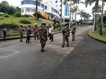 10月17日下午,二水廠進行了反恐怖防范應急演練。1名員工充當被尾隨的值班人員,3名員工充當恐怖分子,整個演練過程中,隊員們根據演練方案妥善解救 “人質”、抓捕“恐怖分子”,一切都有條不紊地進行,使演練取得圓滿成功。