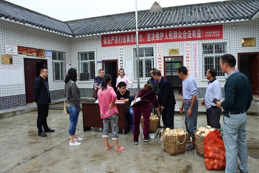 上午,吳書記一行在大橋村開展“以購代捐”活動,收購貧困戶農副產品(地瓜),并現場發放收購資金。