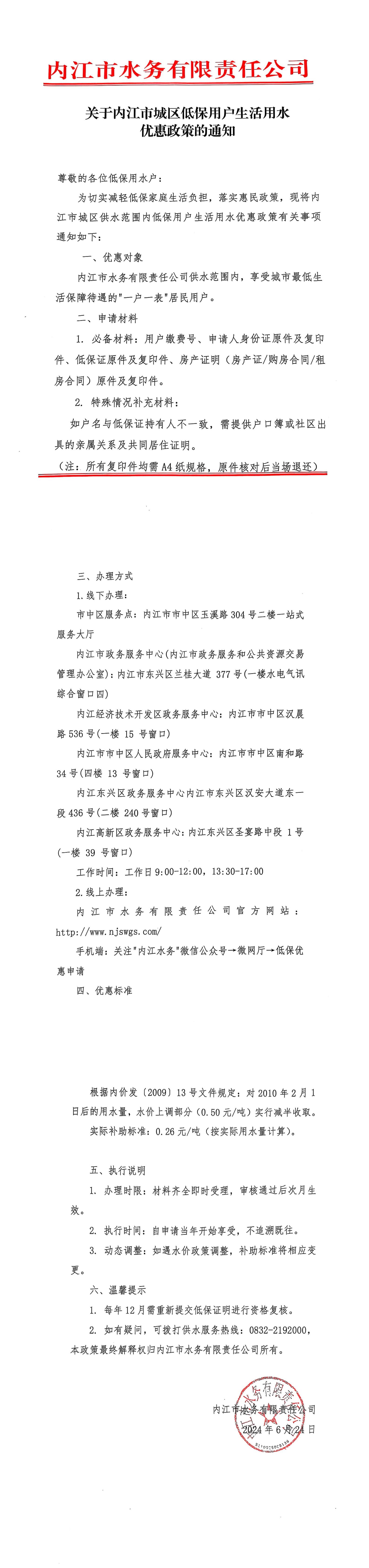 關于內江市城區低保用戶生活用水優惠政策的通知